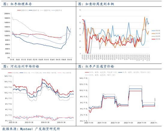 红枣传统消费旺季尚未启动,需求端缺乏支撑。河北崔尔庄、广州如意坊等主销区到货量有限,日均3-4辆,也存在部分新季红枣到货,但市场对旧货青睐度高于新季,使得下游采购较为谨慎,按需为主,未能对价格形成明显提振,关注后续消费变化。