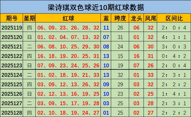 梁诗琪本期双色球推荐: