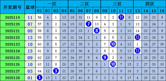 上期蓝球开出01,为小奇数号码。近10期大小比为6:4,近5期大小比为3:2;近10期奇偶比为7:3,近5期奇偶比为4:1,本期预计奇数蓝球热出,独蓝关注一码:11。