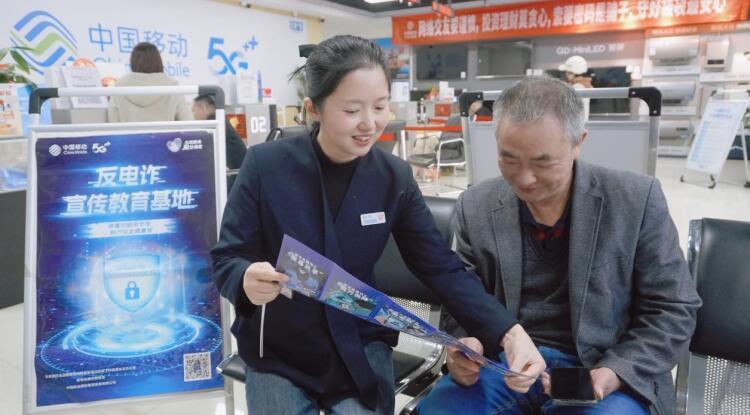安徽移动工作人员在营业厅进行反诈宣传。安徽移动供图