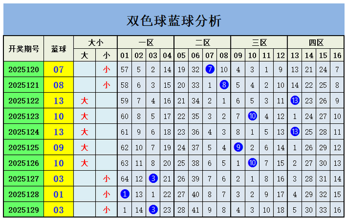 上期蓝球开出一区号码03