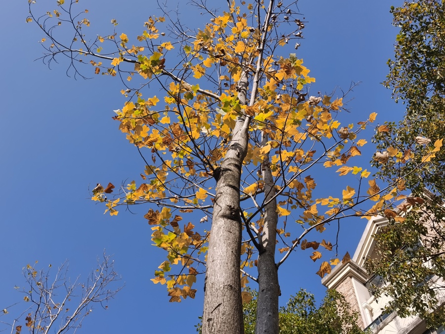 “近年来多种植物的确有变色、落叶延后的趋势,集中在11月下旬至12月。”上海植物园高级工程师黄增艳表示,近年来夏季的异常炎热和深秋时节冷空气的“不给力”可能是拖慢叶片变色、落叶的原因。近年常见的悬铃木叶片大多没变颜色就已焦枯掉落,也与夏季的高温、干旱脱不开干系。