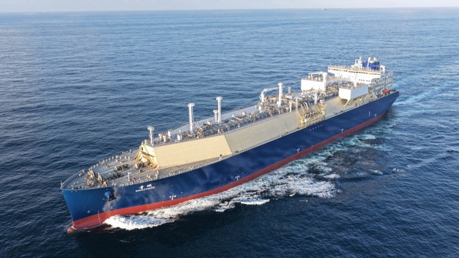 11月24日,中船沪东中华造船(集团)有限公司为中远海运中石油国事LNG运输项目三期建造的首艘17.4万立方米液化天然气(LNG)运输船“青城”号提前命名交付。这是沪东中华为该项目交付的第7艘大型LNG船。至此,沪东中华今年已累计交付9艘LNG船,创造中国年度交付LNG船新纪录。