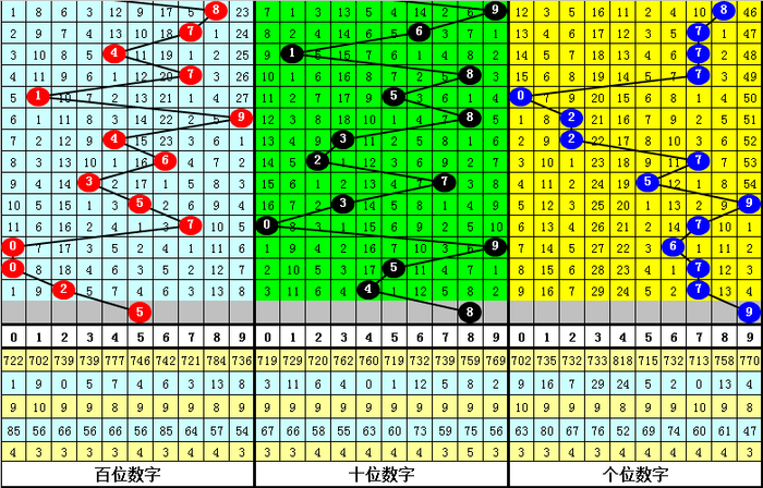 上期第一位开出奖号:2,间隔18期出现,走势非常冷,最近10期该位热码表现非常低迷,本期适当关注该位热码逐渐回补,参考号码5。