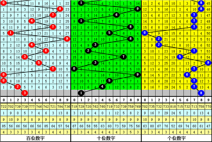号码个数分析:历史上排列三第285期同期奖号中,号码0-9出现个数分别为:号码9开出1个,号码2、5开出4个,号码1、8开出5个,号码0、3开出6个,号码6开出7个,号码4开出10个,号码7开出12个,今年第285期排除号码0。