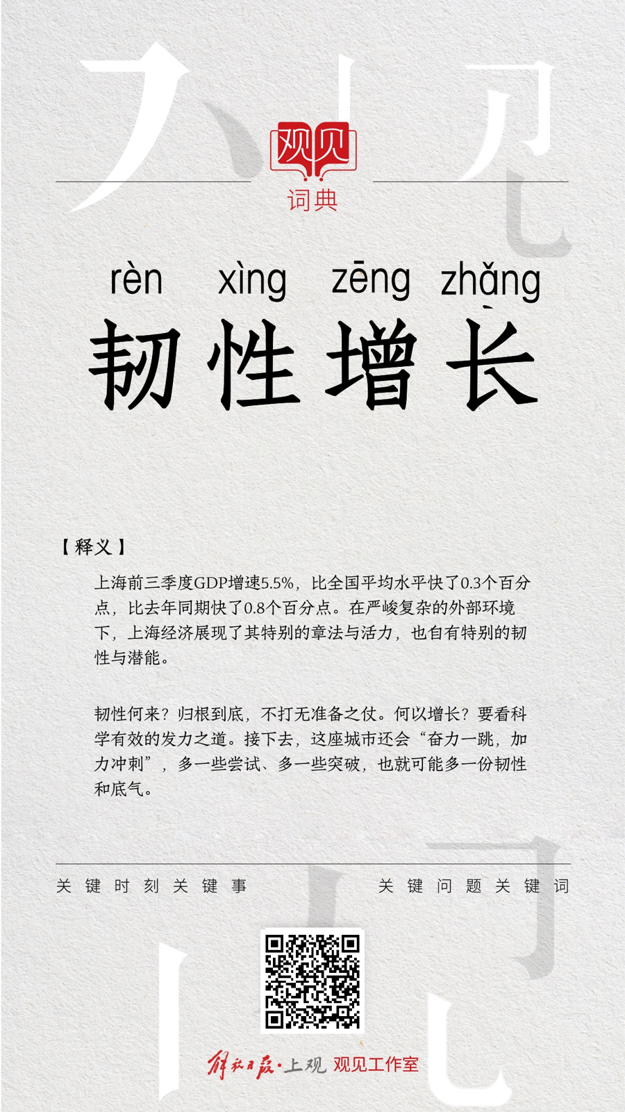 中国经济体量已多年稳居世界第二,世界经济饱受困扰冲击时,中国彰显着特有的韧性。10月公布的前三季度经济数据很能说明问题。GDP增速,全国5.2%,上海5.5%,考虑风浪频频的外部环境,显得殊为不易。