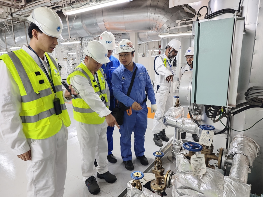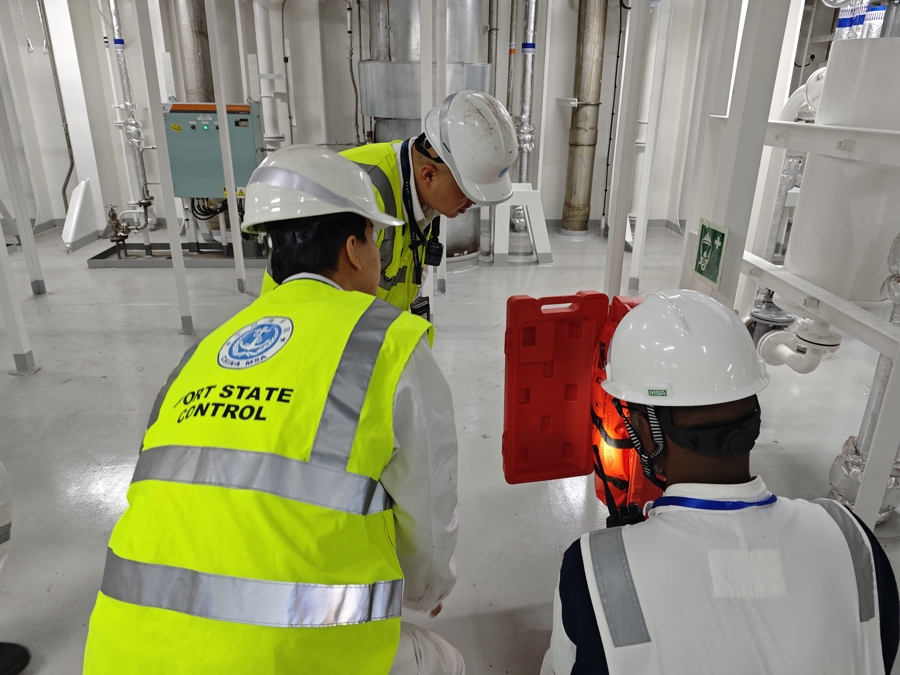 联合检查小组秉持严谨细致的原则,依据各自职责对船舶关键设备、技术状况、船员资质、出入境手续、货物运输准备等重点环节进行全面核查。检查过程中,检查小组重点围绕LNG船舶特有的液货围护系统、低温管路等核心安全环节,深入排查风险隐患,确保各项安全规范落实到位。