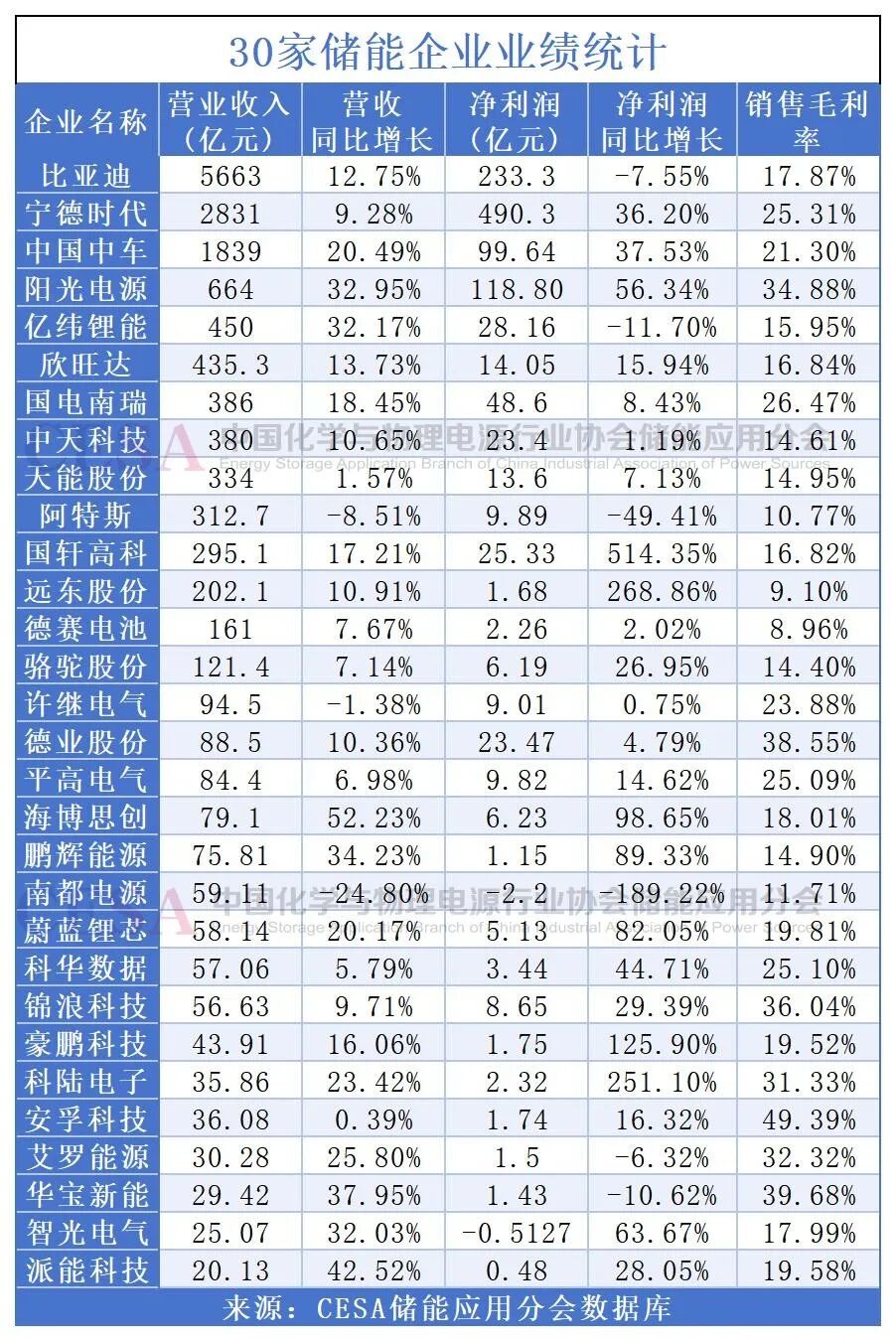 30家储能企业业绩复盘:行业分化加剧,多家龙头预判未来增量市场