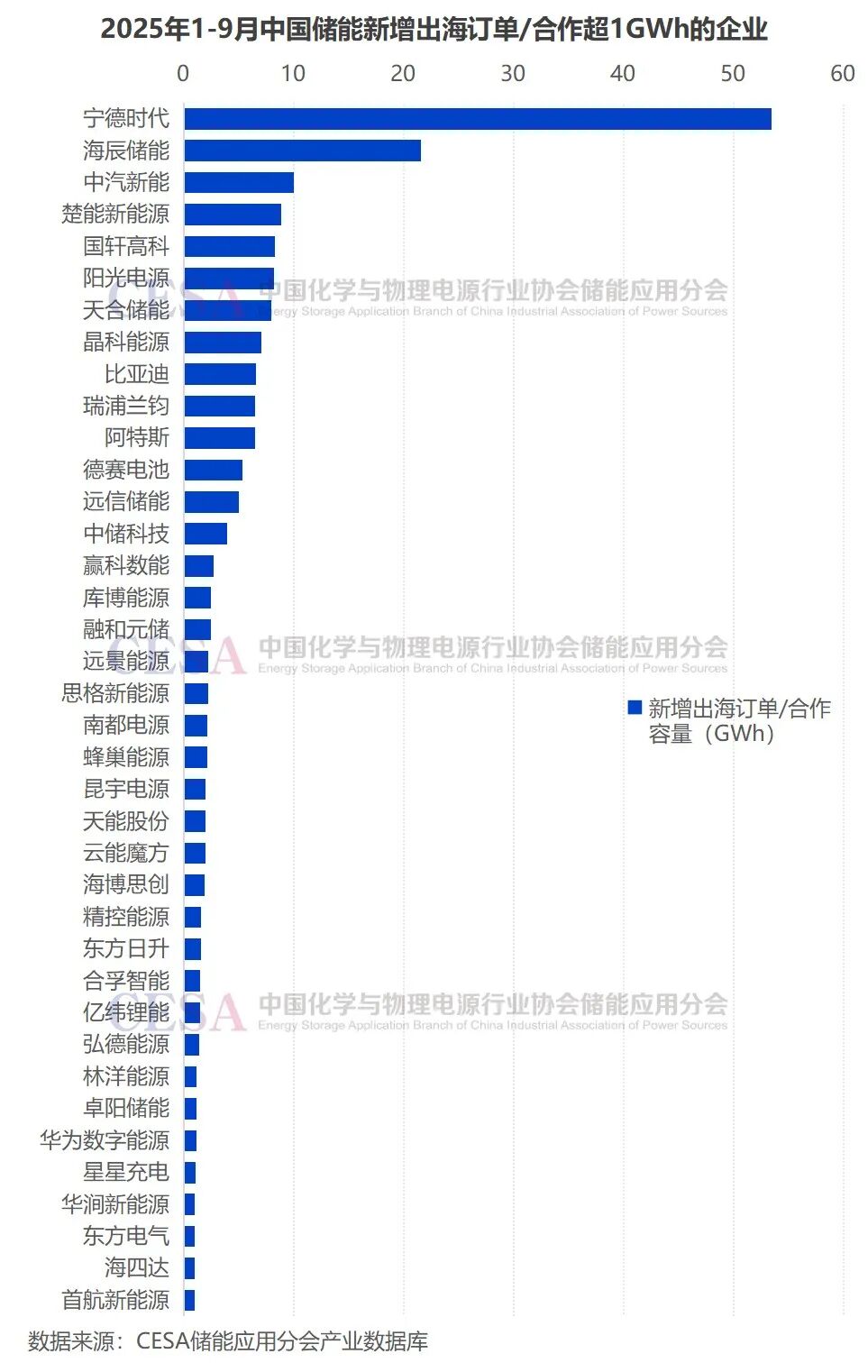 从出海订单看,据CESA储能应用分会数据库统计,2025年1-9月,中国储能新增出海订单/合作总规模达214.7GWh,同比增长131.75%,欧洲、中东、澳大利亚成为中国储能出海的主要战场。