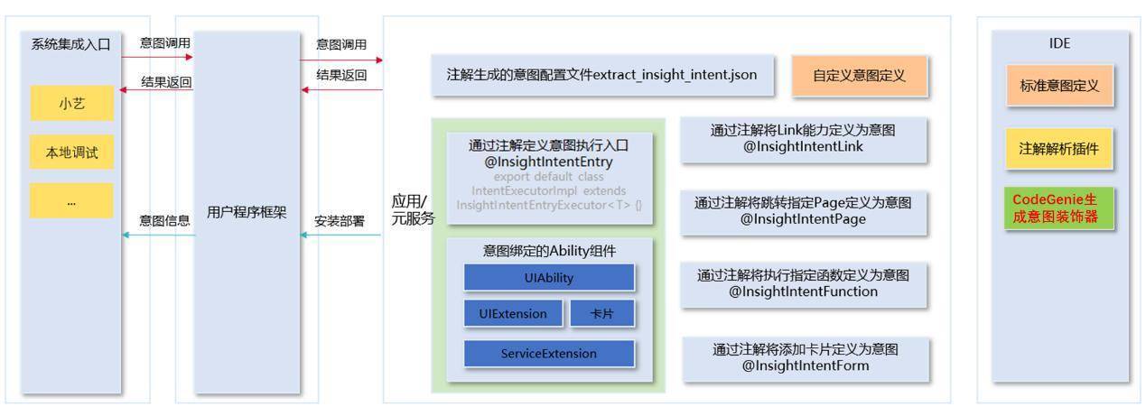 意图框架在 HarmonyOS 中,意图框架是连接用户需求与服务能力的桥梁。它支持两种分发模式:用户主动意图和系统主动推荐,通过语音、小艺搜索、导航条等入口,打破 App 孤岛,实现服务直达。