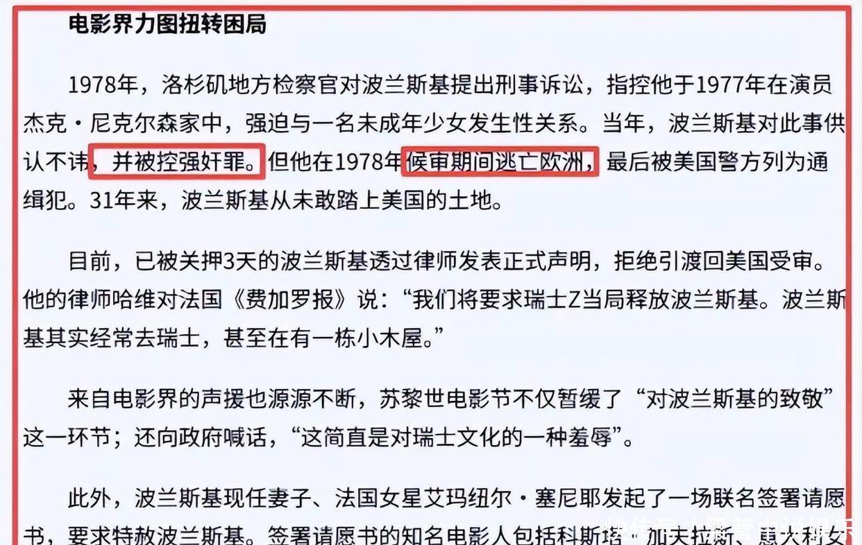 新闻里提到的导演正是波兰斯基,彼时并非只有王家卫,众多知名导演都共同发起了请愿。