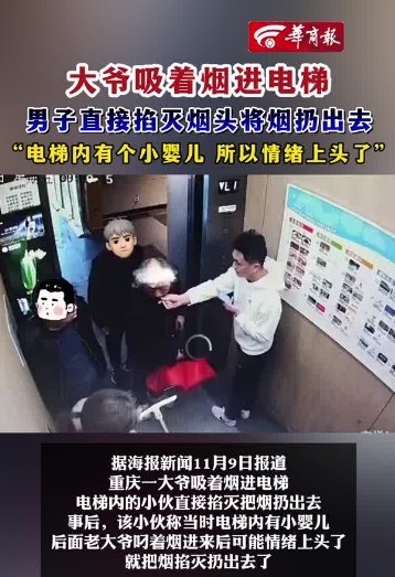 配资咨询平台 男子回应大爷吸烟进电梯被掐灭扔出:电梯中有婴儿 配资咨询平台 来源:元鼎证券登录入口 网站:元鼎证券_元鼎证券配资平台_新股配资网 日期:2025-11-10 21:01:55 查看:53