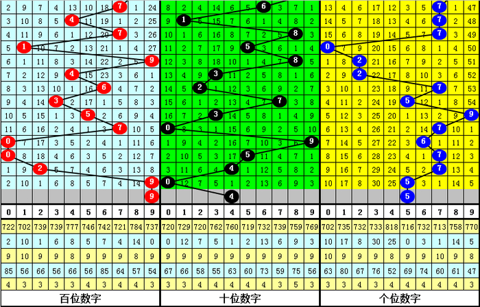 排列三最近10次同时开出奇偶形态:奇偶奇和大小形态:大小大时其奖号分别为:727-549-549-905-945-907-527-747-949-707-905,下期分别开出号码为:734-835-008-285-810-220-627-894-977-096,详细统计见下表: