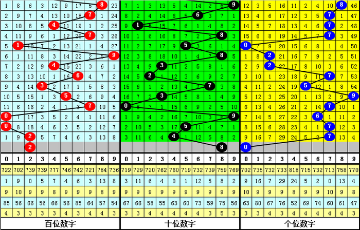 个位目前最冷号码为:3,当前遗漏29期,该号码历史最大遗漏为76期,本期个位防冷码3解冻。