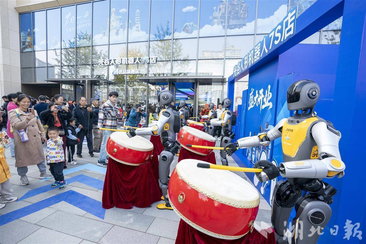 人形机器人在机器人7S店门前表演。 (湖北日报全媒记者 魏铼 摄)